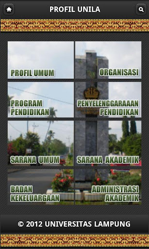 Aplikasi pengenalan Universitas Lampung pada Mobile Smartphone dan Tablet PC berbasis Android merupakan aplikasi yang memuat informasi umum Universitas Lampung. Aplikasi tersusun secara rapih sesuai sub-informasinya. Hal ini sangat memudahkan pengguna untuk mendapatkan informasi yang ingin didapatkannya. Aplikasi ini dilengkapi juga dengan gambar galeri Unila. Selanjutnya dengan aplikasi ini mampu menggambarkan kondisi umum Universitas Lampung, artinya dengan aplikasi ini pengguna dapat mengetahui keadaaan umum Universitas Lampung.